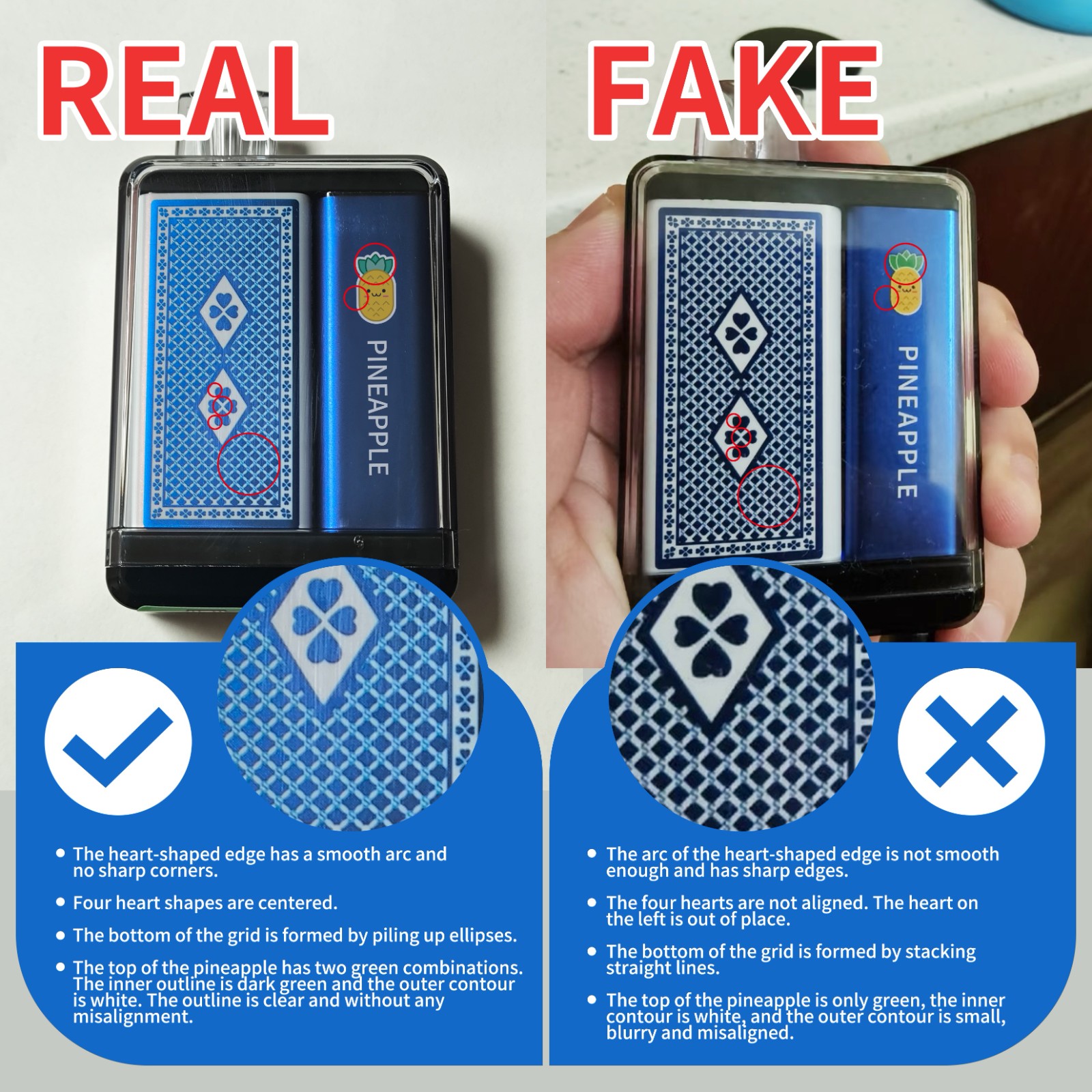 Here are a few tips for players to identify authenticity: