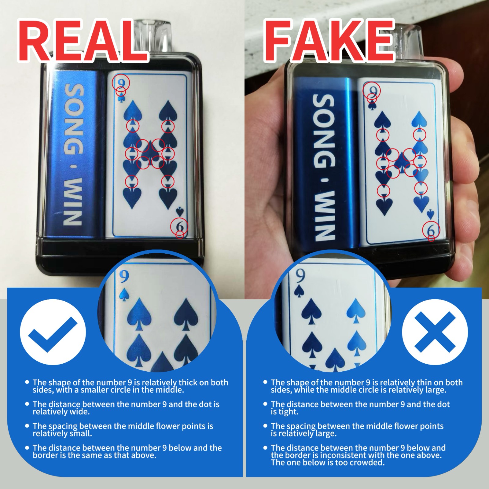 Recently, the company found that counterfeit products of the A01 (Y193) poker series have been leaked on the market. The following are the methods to distinguish the authenticity of the A01 (Y193) poker series. Players who purchase this series can identify the authenticity by themselves according to the illustrations.